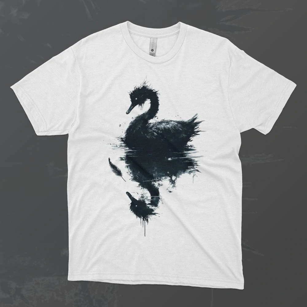 Ošklivé Káčátko – Krev v Labutím Peří je tričko, které přetváří známou pohádku do temného a dramatického vyprávění. Na designu se objevuje samotné ošklivé káčátko, které se v tomto příběhu setkává s nečekaným násilím a temnotou. Krvavé stopy na jemném labutím peří vytvářejí kontrast s křehkostí a nevinností postavy, která byla vždy považována za nevhodnou a podceňovanou.