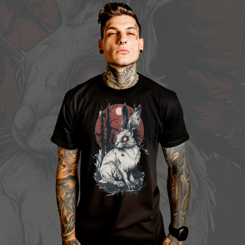 Perfektní volba pro ty, kteří hledají králíka na triko, hororový motiv králíka nebo mystický zvířecí design na tričko. Tričko s mystickým králíkem je jedinečným kouskem pro váš styl. 🐇✨