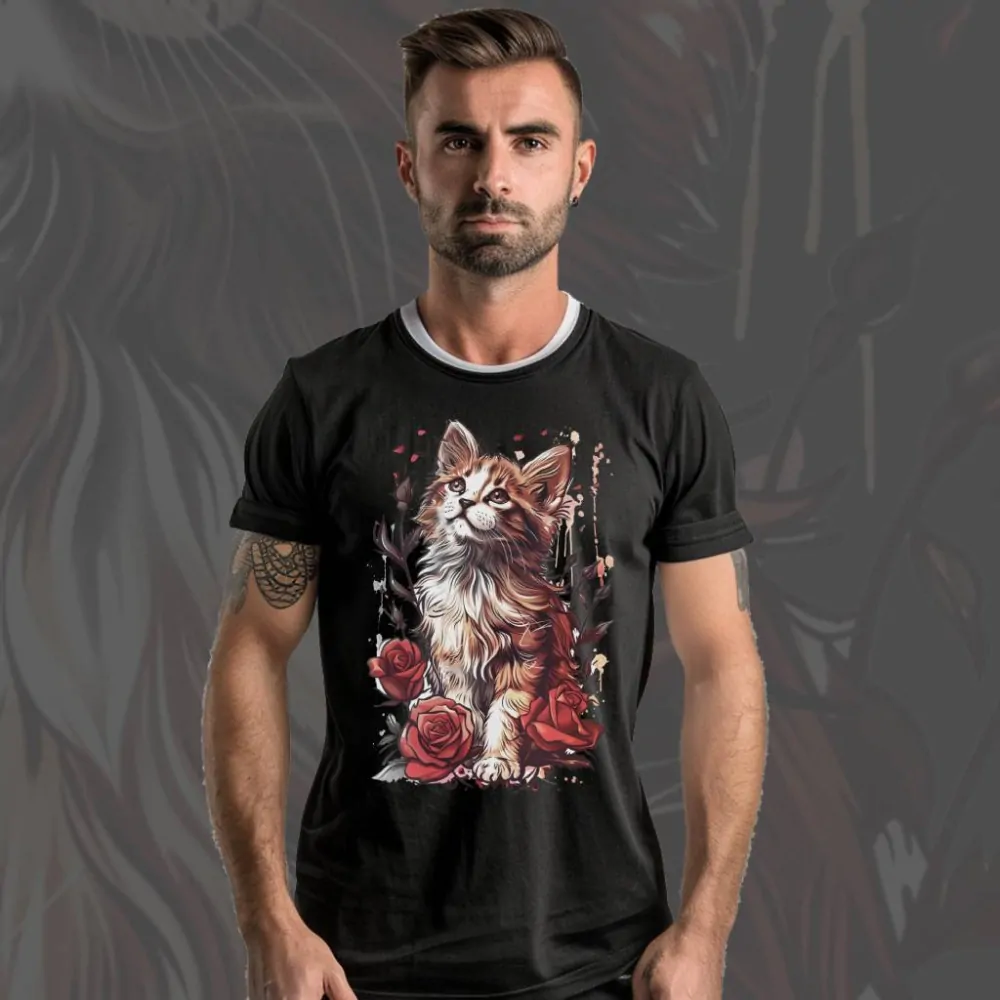 Představujeme vám tričko s názvem Šarlatové kotě, které zachycuje roztomilé kotě obklopené záplavou červených růží. Toto něžné kotě sedí uprostřed kvetoucích růží, jejichž bohatá červená barva vytváří kolem něj romantickou a kouzelnou atmosféru. Představte si, jak Šarlatové kotě objevuje krásu růžové zahrady, hraje si s okvětními lístky a užívá si klidného prostředí. Toto triko je ideální pro všechny milovníky koťat a květin, kteří chtějí do svého šatníku přidat kousek plný jemnosti a elegance. Přidejte si tento půvabný kousek do svého šatníku a nechte se unést kouzlem růžové zahrady s touto rozkošnou kočičí kamarádkou.