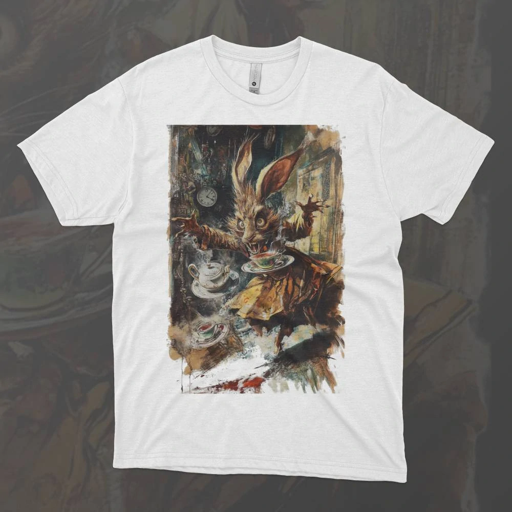 Šílený čajový dýchánek – Mad Tea Party je symbolem neomezené fantazie, chaosu a nekončící zábavy, která vládne říši divů. Tento motiv vás přenese do okamžiku, kdy čas a pravidla přestávají existovat a každý šálek čaje je příležitostí pro nové, nečekané zážitky. Kloboučník, Březňák a další podivní hosté oslavují šílenství, které spojuje všechny kolem stolu v nádherném šílenství. Tričko s tímto motivem je ideální pro ty, kdo mají smysl pro humor a nebojí se ukázat svou vlastní šílenou stránku. Vstupte do světa, kde je vše možné a kde čajový dýchánek nikdy nekončí!