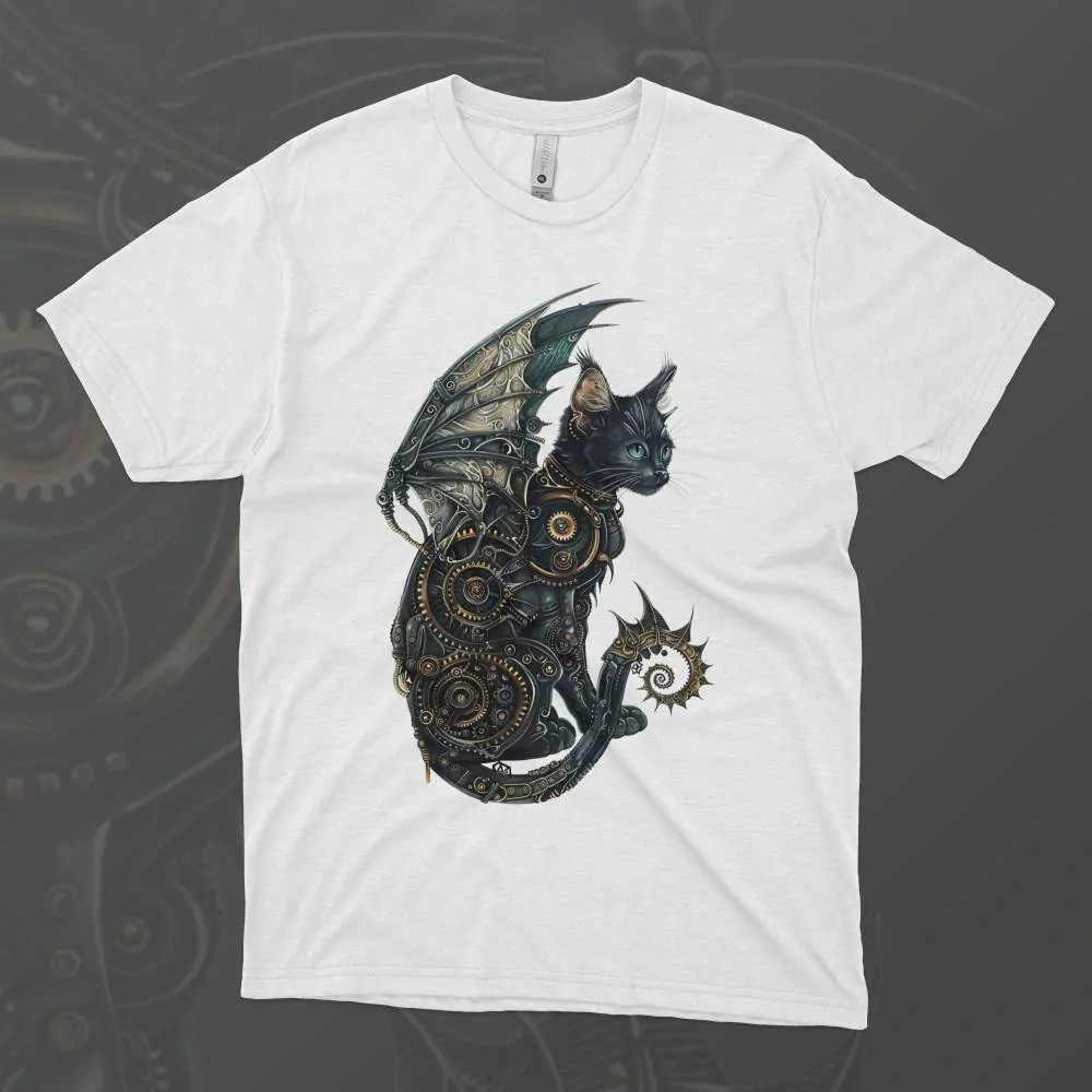 Představujeme vám tričko s názvem Steampunková kočka, které zachycuje tajemnou černou kočku ve steampunkovém stylu, ozdobenou ozubenými kolečky a elegantními křídly. Tato fascinující kočka, s pohledem plným inteligence a odhodlání, nosí mechanická křídla a detaily z kovu, které jí dodávají vzhled mechanického zázraku z alternativní viktoriánské éry. Představte si, jak Steampunková kočka proplouvá vzduchem nad městem plným parních strojů a inženýrských divů, její přítomnost vyzařuje jak mystiku, tak technickou inovaci. Toto triko je ideální pro všechny milovníky koček a steampunkového stylu, kteří chtějí do svého šatníku přidat kousek plný originality, dobrodružství a elegance. Přidejte si tento jedinečný kousek do svého šatníku a nechte se unést světem steampunku s touto okouzlující kočičí průzkumnicí.