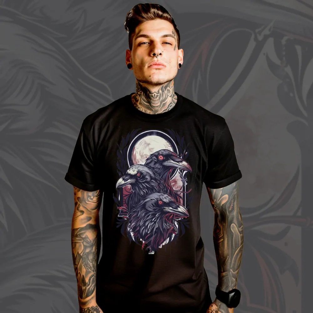 Co přinesou tři havrani, kteří krouží nad temným nebi? Toto tričko je bránou do světa, kde se stýkají mystika a temnota, tajemno a síla. Připravte se na putování do podsvětí s těmito třemi havrany, kteří nesou zprávy ze stínů a varují před nebezpečím, které číhá za rohem. Jsou poslové smrti nebo ochránci tajemství? Oblečte se do trička Three Ravens a objevte odpověď. Havran na vašem tričku.