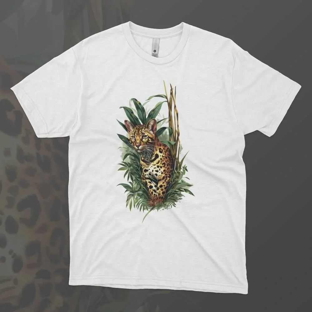 Představujeme vám tričko s názvem Tropická kočka, které zachycuje elegantní bengalskou kočku, jak se skrývá mezi živými zelenými listy tropického deštného pralesa. Její špičatá uši a lesklá srst se ztrácejí v bohaté vegetaci, kde se zdá, že kočka a příroda spojily síly v harmonii. Představte si, jak Tropická kočka zkoumá své okolí, šplhá po vysokých stromech a loví v teplém tropickém podnebí. Toto tričko je určeno pro všechny milovníky koček, kteří si přejí přenést se do exotického prostředí tropů přímo z pohodlí svého domova. Přidejte si tento jedinečný kousek do svého šatníku a nechte se unést kouzlem tropů s touto graciózní bengalskou kočkou.