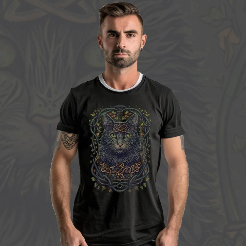 Představujeme vám tričko s názvem Vikingská kočka, které zachycuje odvážnou černou kočku ve stylu vikingského válečníka. Tato impozantní kočka, s očima plnýma odhodlání a hřívy na znamení síly, je připravena na dobrodružství a boj. Nosí vikingskou helmu a brnění, které jí dodává vzhled statečného bojovníka z dávných dob. Představte si, jak Vikingská kočka stojí na palubě vikingské lodi, připravená plout do neznáma, její hříva vlaje ve větru a v očích se zračí touha po dobytí nových světů. Toto triko je ideální pro všechny milovníky koček a vikingské historie, kteří chtějí do svého šatníku přidat kousek plný síly, odvahy a historického ducha. Přidejte si tento jedinečný kousek do svého šatníku a nechte se unést dobyvačným duchem vikingských dobrodružství s touto majestátní kočkou válečnicí.