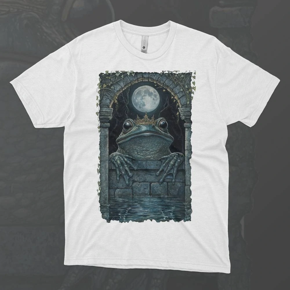Žabí Princ – Stín Jezerního Krále je temné a tajemné tričko, které odhaluje hluboké souvislosti mezi magickým světem a skutečným životem. Design zobrazuje stín, který je zároveň symbolem královské minulosti a neúprosného osudu, jenž se táhne za princem. Tento motiv propojuje pohádku s elementy temné magie a moci přírody, kde i ta nejnevinější touha může vyústit v nečekaný zvrat. Tričko evokuje mystiku, kde voda a stíny skrývají mnoho nevyřčených tajemství.