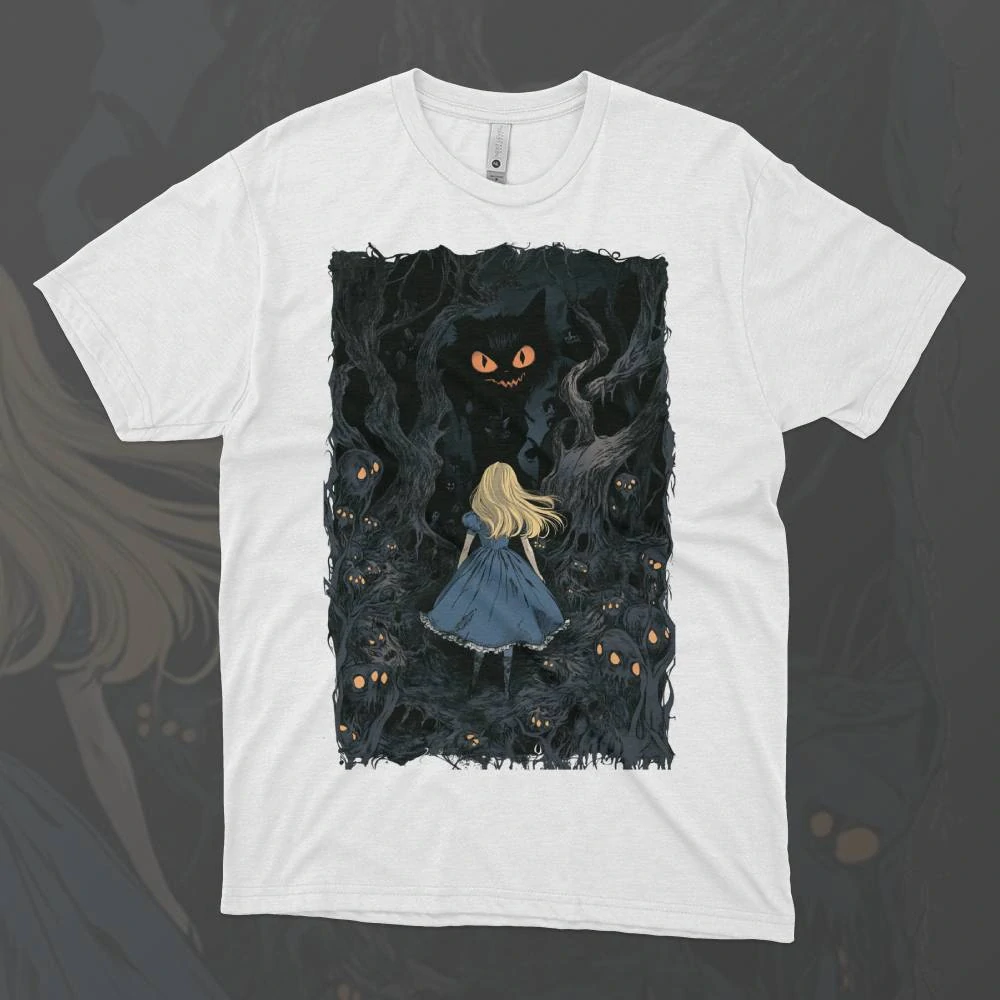 Ztracená v říši divů – Lost in Wonderland je tričko, které zachycuje magii a chaos Alenčina dobrodružství v podivném a neuvěřitelném světě. Stejně jako Alenka, která bloudí mezi nejasnými hranicemi reality a fantazie, i tento design vás přenese do světa plného zázraků, překvapení a neuvěřitelných postav. Tričko s tímto motivem je ideální pro každého, kdo se nebojí ztratit ve světě plném tajemství a kouzel. S Ztracenou v říši divů budete nosit kousek té dobrodružné magie a nechat se unášet na vlnách neuvěřitelného světa, kde všechno je možné.