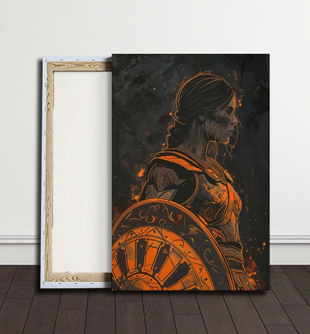 Elegantní párový obraz gladiátorky dodává prostoru ženskou sílu a odhodlání. Tento obraz krásně doplňuje motiv gladiátora a společně ztělesňují kontrast mezi silou a půvabem, který vás přenese do arén starověkého světa.