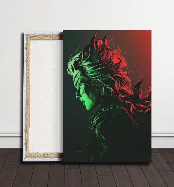 Lovkyně démonů je silná, sebevědomá a nepřemožitelná. Tento obraz je plný rozhodnosti a vnitřní síly, která jí umožňuje čelit nejtěžším výzvám. Pro ideální kontrast se podívejte na mužskou variantu, která dodá celému páru dravost a mužskou houževnatost.