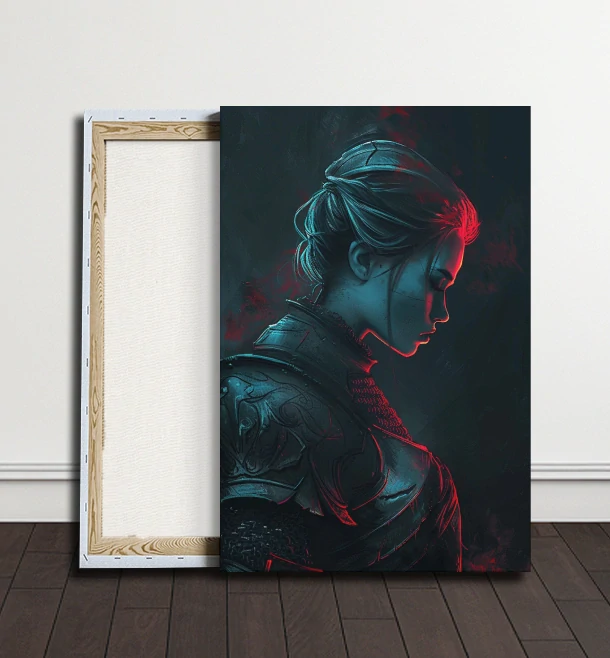 Žena v brnění ztělesňuje sílu a nezávislost, vyzařující sebevědomí a klid, zatímco stojí po boku svého rytíře. Její přítomnost a podpora posilují jeho odhodlání, čímž dokazují, že společně mohou čelit jakékoli výzvě. Tento obraz zachycuje jejich vzájemný respekt a rovnost, kde oba sdílejí hodnoty hrdinství a odvahy.