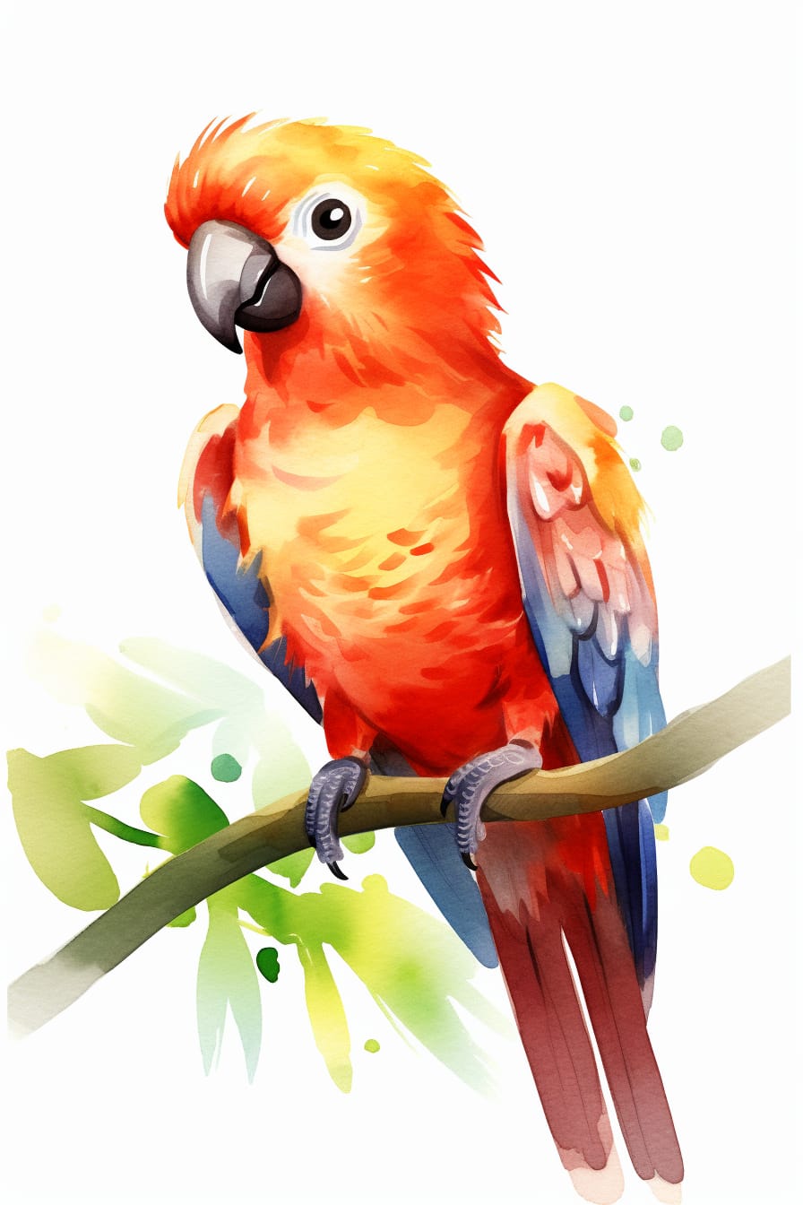 Na tomto kresleném obraze se nachází nádherný barevný papoušek, který tvoří živý a radostný kontrast na čistém bílém pozadí. Jeho pestrobarevné peří a výrazné rysy představují symfonii krásy a života, která oživuje celou scénu.