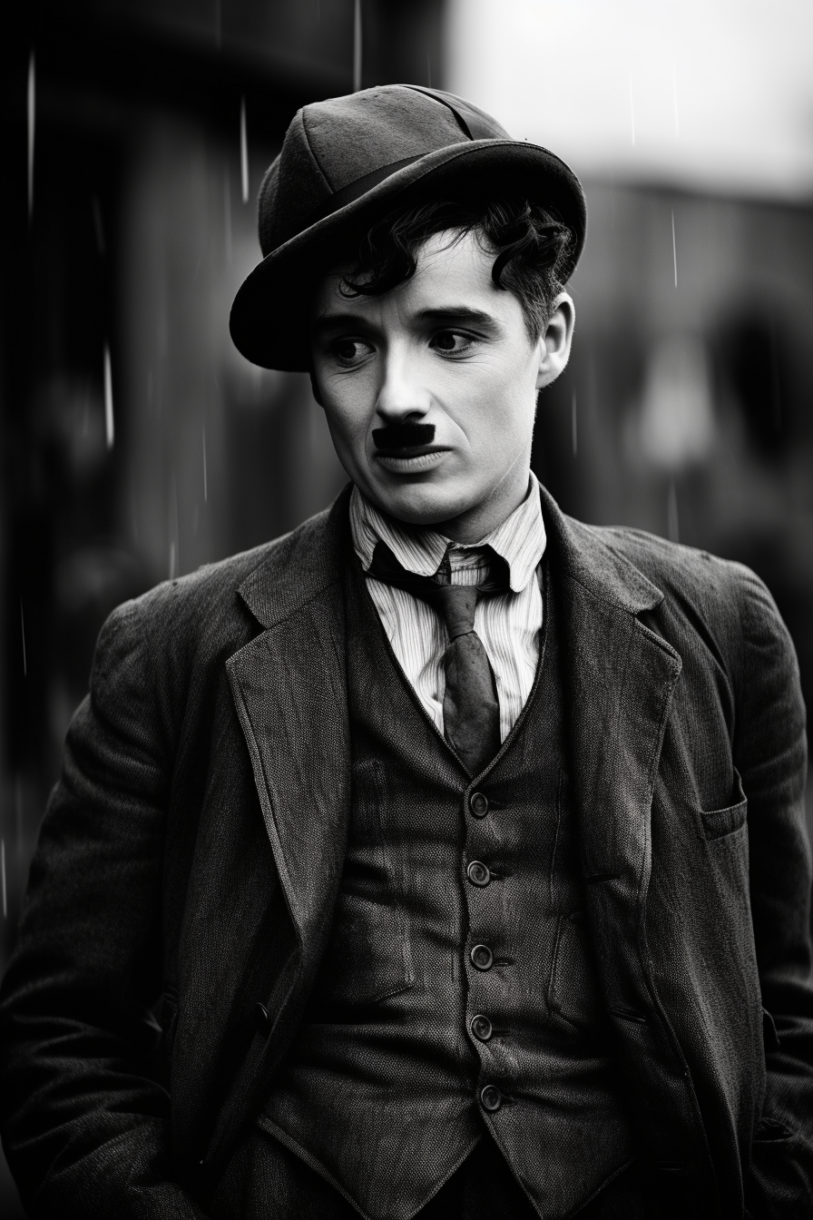 V tomto podmanivém obrazu ožívá nezaměnitelný Charlie Chaplin ve svém pantomimickém vystoupení. Jeho tvář a tělo vyprávějí nekonečné příběhy, od radosti a smíchu po melancholii a dojetí. V každé poloze se skrývá jedinečný příběh tohoto filmového génia, který stvořil nezapomenutelnou značku ve světě kinematografie.