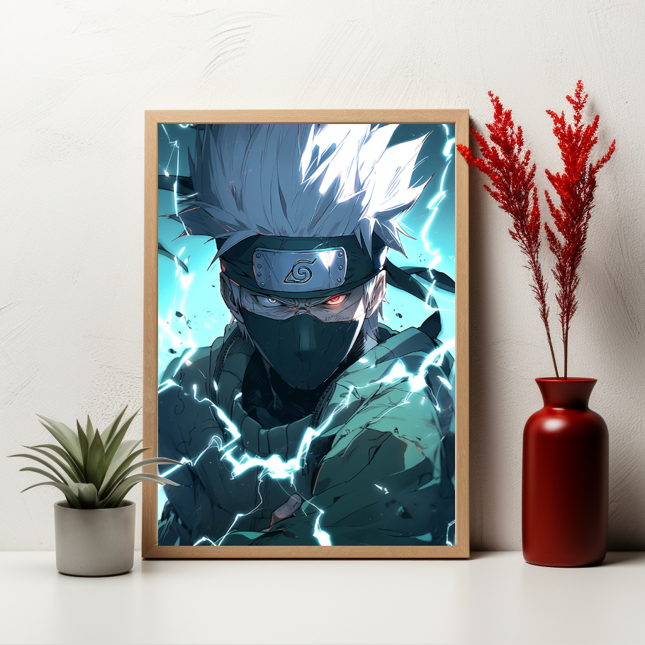 Mistr Sharinganu Kakashi Hatake je zobrazen v tomto portrétu jako ochránce a průvodce. Jeho oči se třpytí inteligencí a sílou, zatímco v pozadí je zpodobněn jeho slavný jutsu - Kamui. Každý detail zdůrazňuje jeho mistrovství v umění boje.