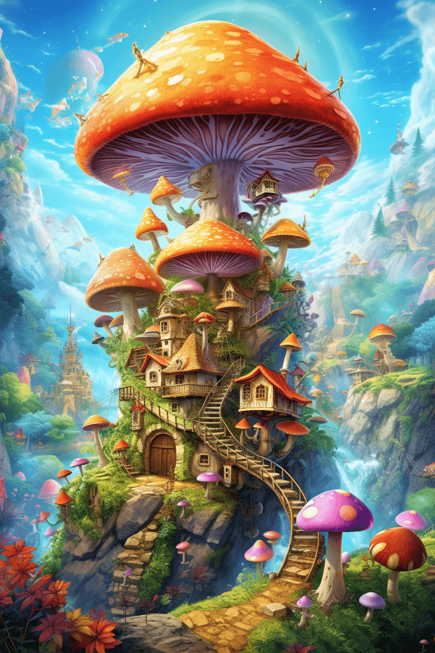 "Kouzelná houbová říše" je obrazem plného magie a fantazie, který přenáší diváka do úžasného světa. V tomto pohádkovém krajině se rozprostírá lesní království, jehož obrysy utvářejí ohromné houby s pestrými vzory a zářivými barvami. Mezi jejich klobouky se skrývají malé zázračné chaloupky, které jsou domovem pohádkových bytostí. Světlo pronikající skrze škvíry vytváří kouzelné záření a vytváří tajemnou atmosféru, která naplňuje tento obraz. Kouzelná houbová říše přináší do života diváka pocit zázraku a možnost uniknout do fantastického světa plného překvapení a nekonečných dobrodružství.