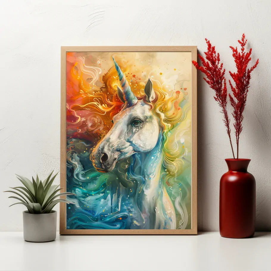 Kouzelný jednorožec přináší do světa světlo naděje a čistoty, jehož krása oslní každého pozorovatele. Jeho přítomnost evokuje pocity zázraku a tajemství, které propojují reálný svět s pohádkovou říší.