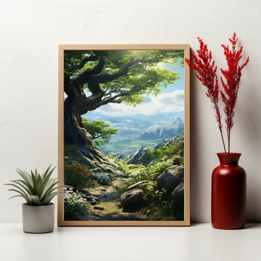 Tato kouzelná lesní cesta nás zve do světa, kde se modré nebe propojuje s rozkvetlými stromy a vytváří magickou atmosféru. Je to cesta plná příslibů a tajemství, která láká k objevování a dobrodružství.