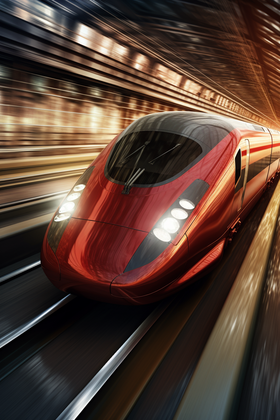 V temném a tajemném tunelu se deroucí moderní červený rychlo-vlak jako ohnivý šíp, jehož rychlost rozproudila vzduch kolem něj. Zářivě červené světlo se odráží od stěn tunelu, tvoříce surreálnou kaskádu jisker, jež doprovází průlet vlaku. Tato scéna vyjadřuje sílu inovace a nezkrotnou touhu po neomezeném dobrodružství.