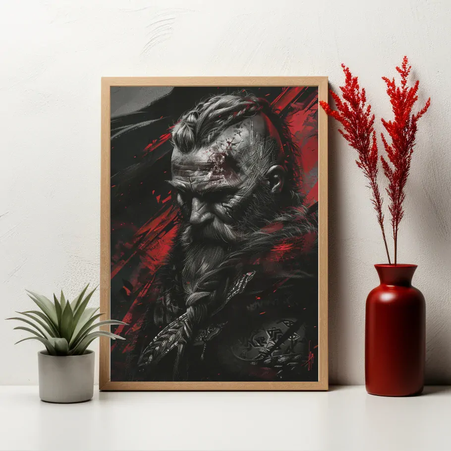 Příliv Vikingovy síly vyzařuje mocnou esenci bojovného ducha a nezlomné vůle, která nabádá k dobytí nových horizontů a výzvách. Tento obraz přináší do prostoru vlny energie a odhodlání, které znovu probouzejí ducha dobrodružství.