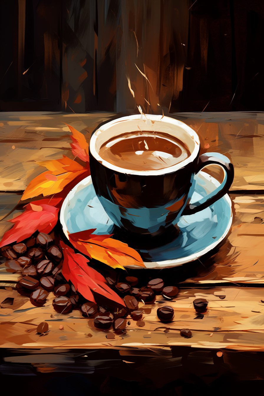 Ráno začíná jedinečným rituálem - hrnek plný kávy, jemný kouř a okouzlující vůně. Na talířku se třpytí zrnka kávy jako symbol bohatých zážitků. Obraz odráží dokonalý okamžik pro probuzení mysli a těla.