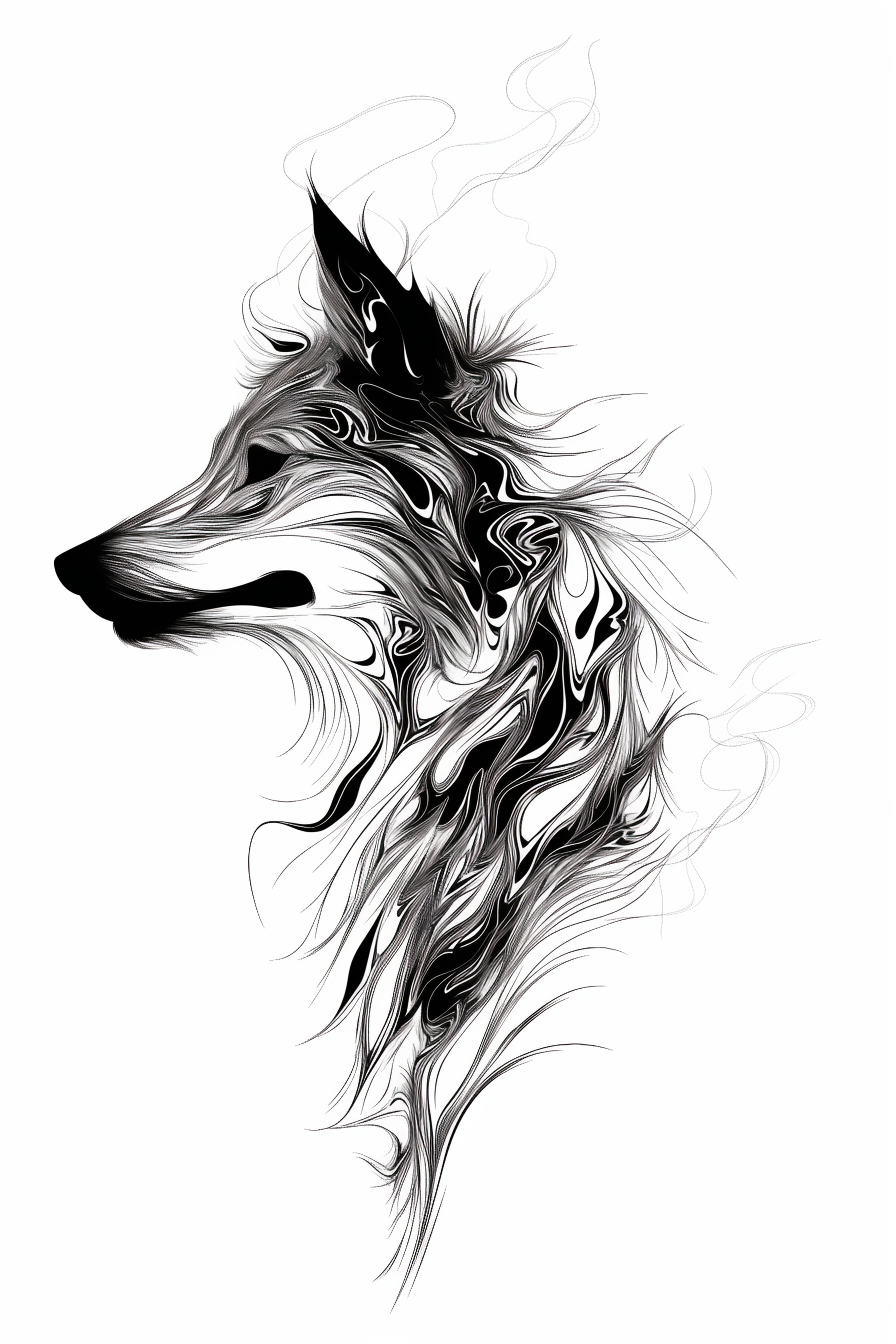 Na čistém bílém pozadí se vynořuje černobílá hlava vlka, jehož zraky pronikají do duše a odhalují sílu divokého ducha a nezkrotnou vášeň.