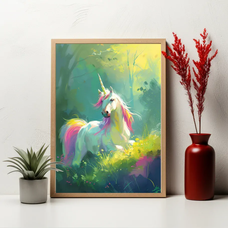 Tajemný svět jednorožců je jako branou do pohádkového království, kde se prolínají realita a fantazie. Skrytý za zářivými duhami a jemnými mglami je tento svět domovem záhadných tvorů, jejichž křišťálové rohy a zářivá srst vyvolávají dojem nesmírného mystéria a krásy. V tomto tajemném světě se každý stín a každý lesk stává součástí poutavého příběhu, který nás vtahuje do svých kouzelných hlubin.