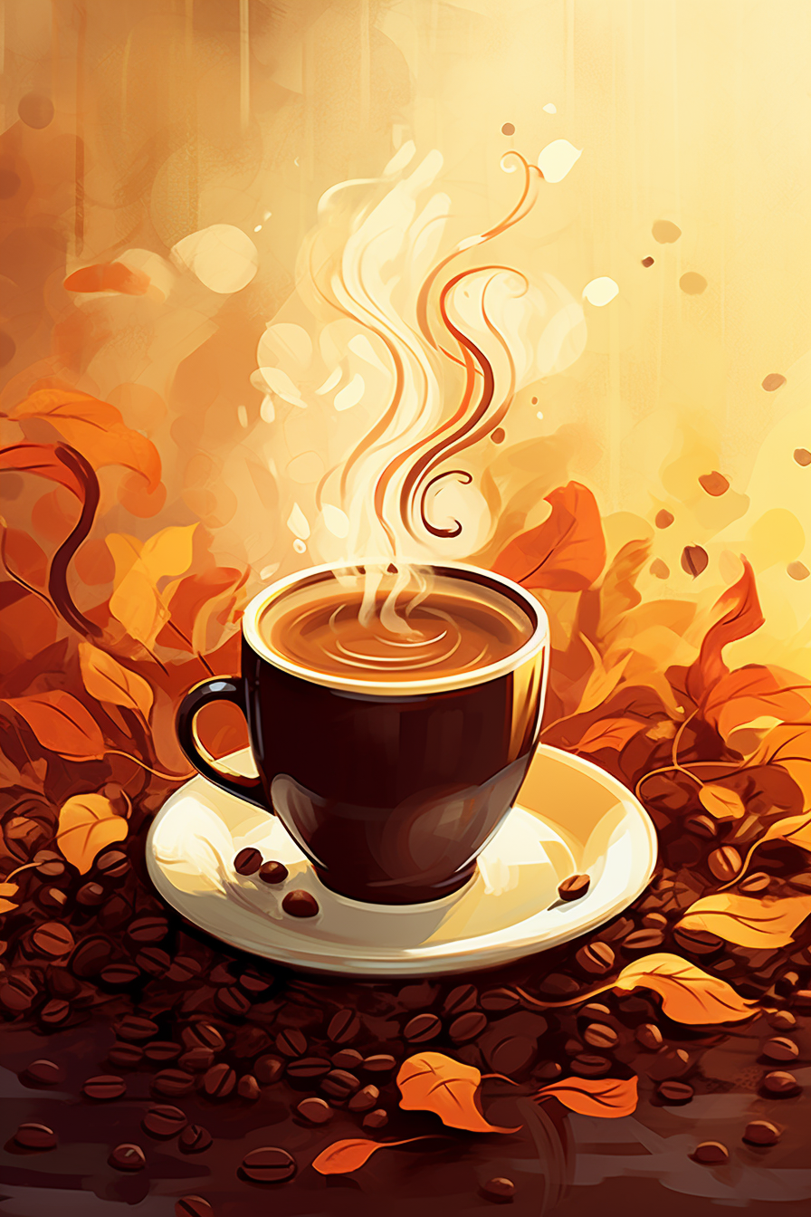 V kávovém hrníčku se skrývá tajemství, které otevírá brány smyslového potěšení. Kouř z kávy vypráví svůj unikátní příběh a na talířku zrnka kávy dodávají magický půvab. Obraz je pozvánkou do světa záhadných kávových chvil plných chuti a vjemů.