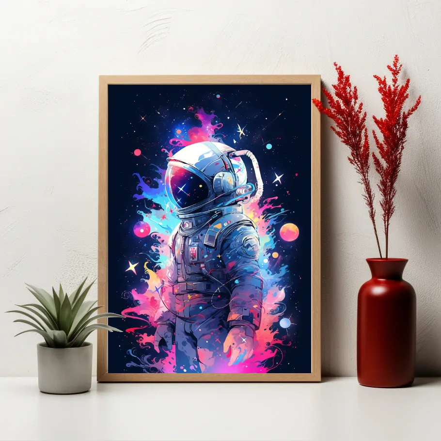 Astronaut zakusuje stín měsíce, když zkoumá nové horizonty vesmíru. Jeho odvaha a odhodlání ho ženou kupředu. Obraz vyvolává pocit dobrodružství a vytrvalosti, kterou astronauti projevují při svých kosmických misích.