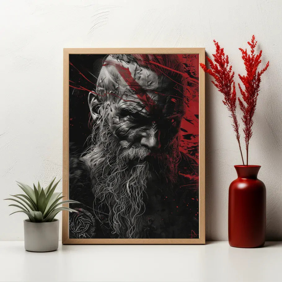Vikingova cesta k horizontu se vine přes nekonečné moře, kde se setkává s bouřemi i klidnými vodami, vždy směřující k neznámému dáli. Jeho loď se řítí kupředu jako symbol odvahy a touhy po dobrodružství, zatímco jeho pohled zůstává upřený k nekonečnému obzoru, kde se snoubí nebe s mořem v jediné nedozírné linii.