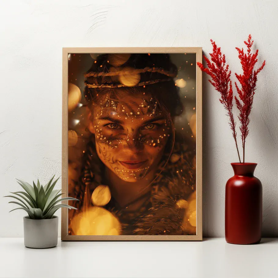 Vikingská válečnice v plamenech byla zpodobněna jako symbol odhodlání a síly v tvrdých časech. S mečem v ruce a v plné zbroji, se odvážně postavila proti nepřátelům, její válečné gesta zářily jako ohnivé pochodně, inspirující ostatní k odhodlanosti a statečnosti.