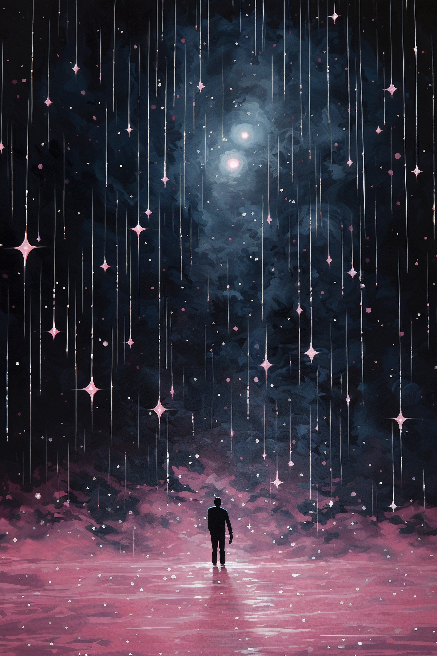 Obraz představuje oblohu s vznešenými hvězdami, které třpytí svou jasností a přinášejí nám pocit klidu a harmonie.