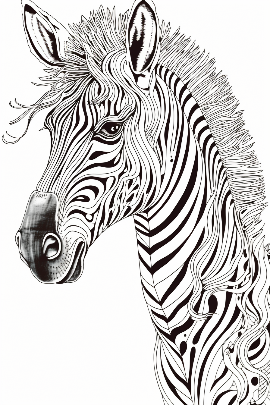 Černobílá ilustrace hlavy a krku zebry. Zebra má hřívu, která je upravena v punkovém stylu. Zebří pruhy jsou tekuté a mají psychedelický nádech. Zebří nos je velký a přehnaný. Pozadí je bílé a ilustrace je provedena v liniovém stylu.
