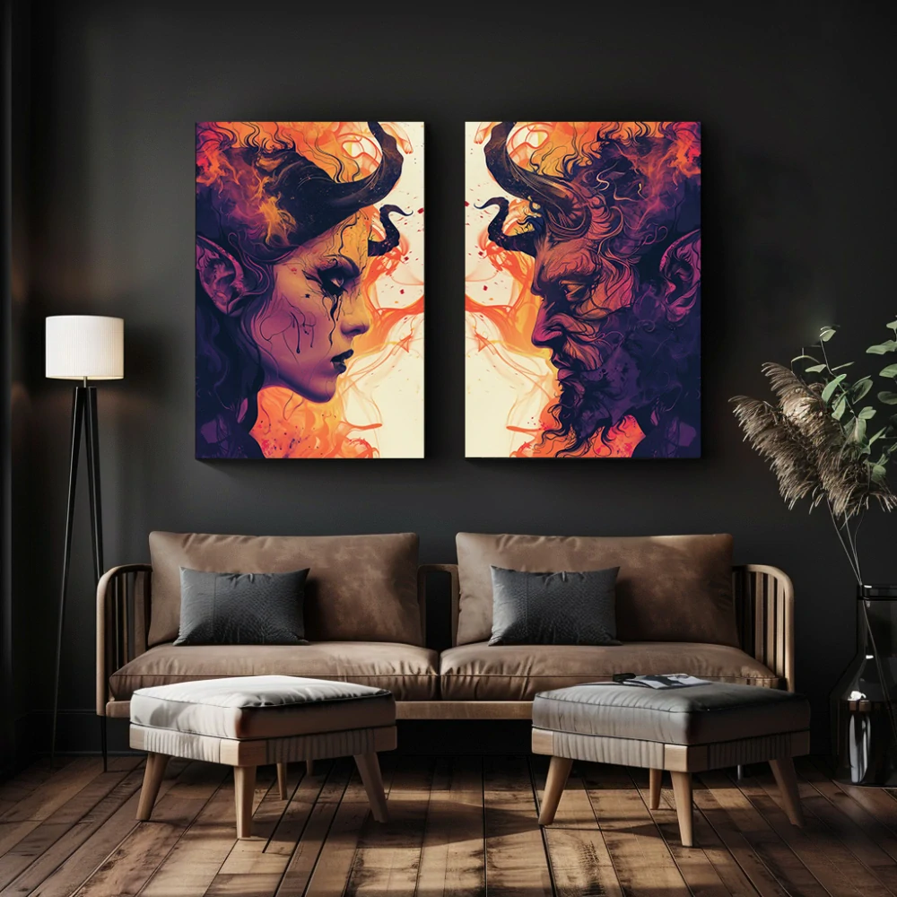 Set párových obrazů: Démon a Démonka (2 ks)