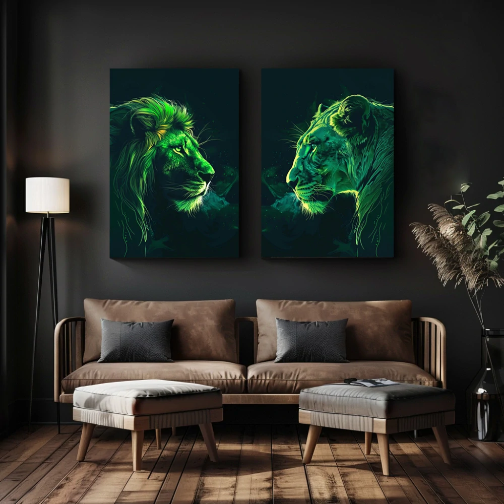 Lev a Lvice – vládci savany, kteří spojují odvahu, sílu a krásu divočiny. Tento párový obrazový set zachycuje nezastavitelnou energii a majestátnost těchto královských šelem, které vládnou jako neochvějný pár. Ideální pro milovníky přírody a symboliky moci.