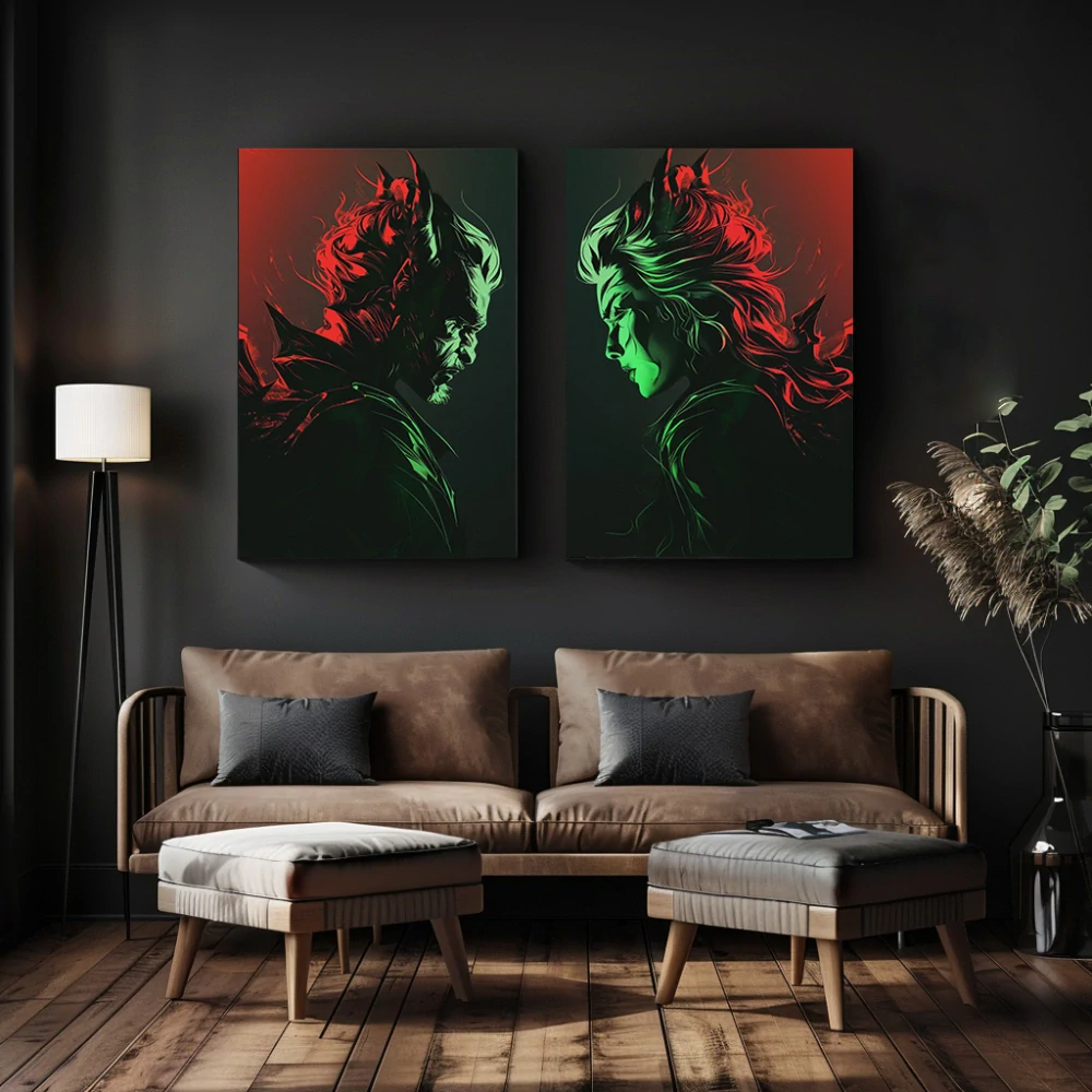 Set párových obrazů: Lovec démonů a Lovkyně démonů (2 ks)